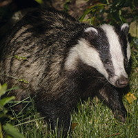 Ein vorwiegend nachtaktiver Allesfresser, der umfangreiche Erdbauten anlegt, die er im Gegensatz zum Fuchs mit Heu und Laub auspolstert. Nachdem sich der Dachs im Herbst eine 2-3 Zentimeter dicke Fettschicht angefressen hat, geht er in ein winterschlafähnliche Ruhephase bis zum Frühjahr. (Foto: iredding01/stock.adobe.com)