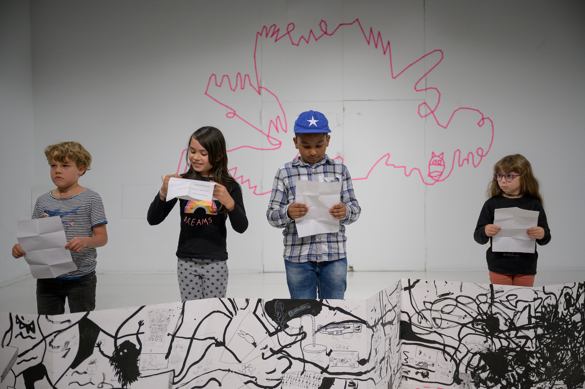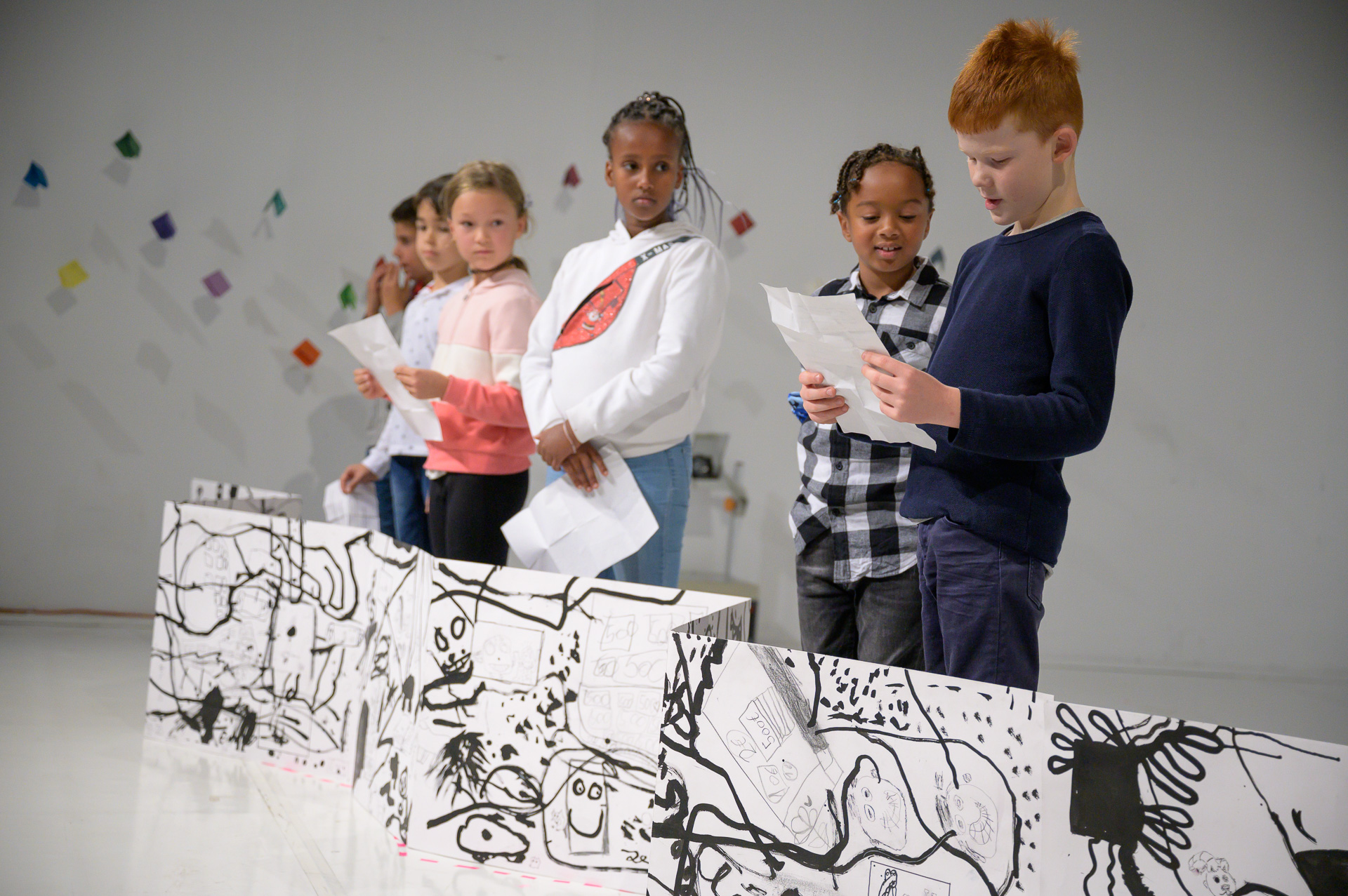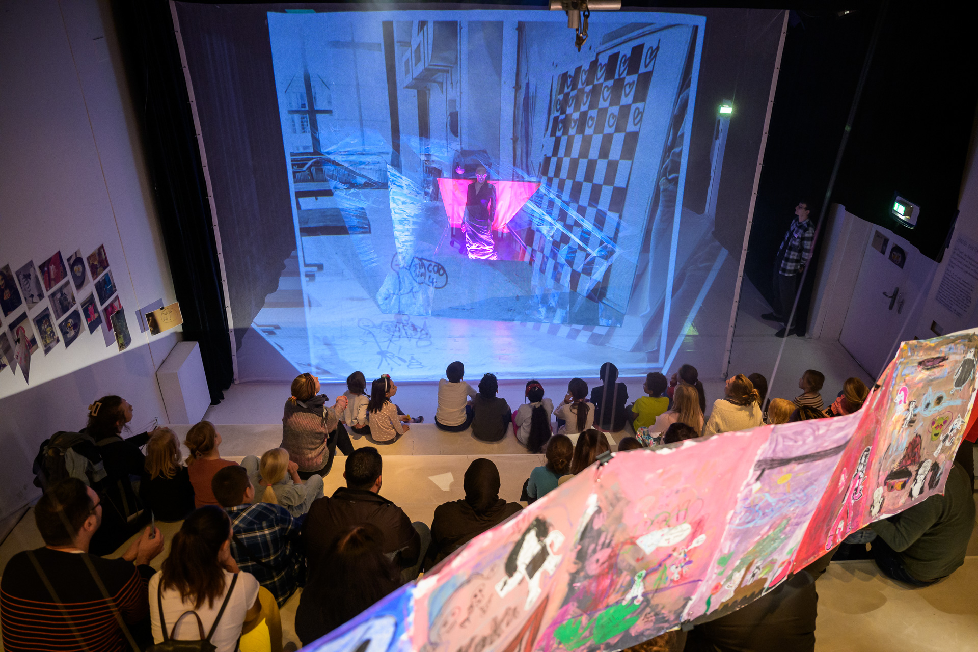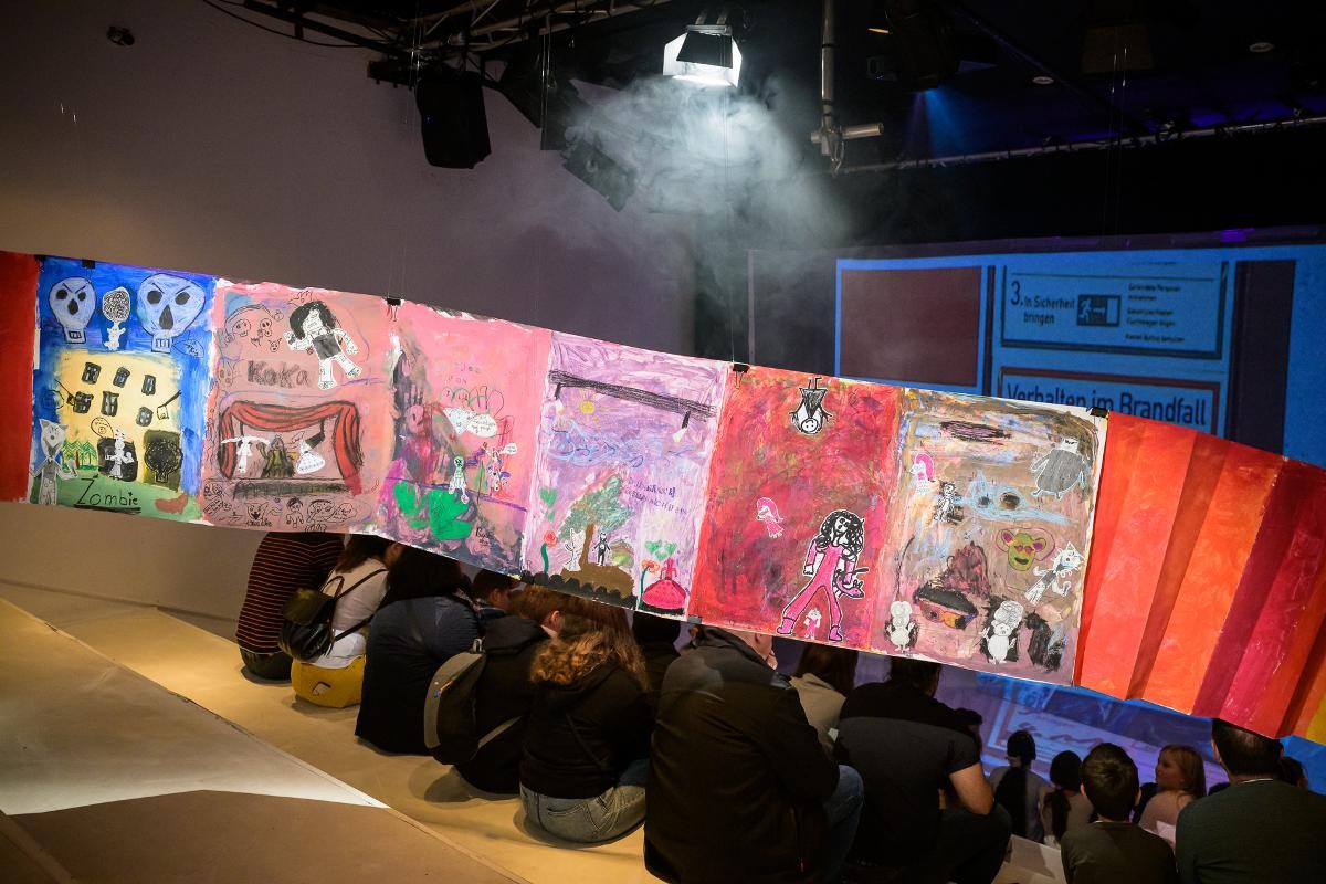 Eine Woche lang schreiben, malen, sprechen und bauen Schüler*innen zusammen mit einem Künstler und einem Schauspieler in der Jugendkunstschule. Die Inspirationen liefern die Räume hinter den Kulissen des Theater Freiburg, die sie zum Auftakt in einer Theaterführung kennenlernen. Zum Finale kehren die Schüler*innen ins Theater zurück und präsentieren ihre Eindrücke in der Aktion "Hinter den Räumen" schauspielerisch und künstlerisch.