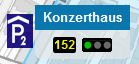 Online zeigt unsere Karte die Anzahl der aktuell freien Plätze in den Parkzonen und den Parkhäusern mit dem Namen und der Nummer des Parkhauses sowie einer Ampel, die über die Auslastung informiert.