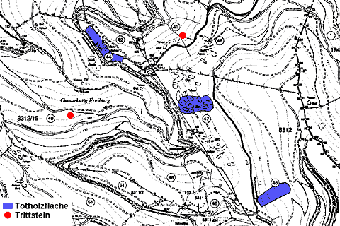 Wir haben ein "Totholzkonzept" entwickelt. Abgestorbene Einzelbäume belassen wir im Wald, solange dies die Sicherheit unserer Besucher nicht gefährdet. Zusätzlich haben wir ein flächendeckendes Netzwerk aus 1-2 Hektar großen Waldparzellen aus der Bewirtschaftung genommen. Ergänzende Kleinflächen verdichten dieses Raster. Im Rahmen des Totholzkonzepts überlassen wir 2,7% des Stadtwaldes der natürlichen Entwicklung und dem biologischen Zerfall.