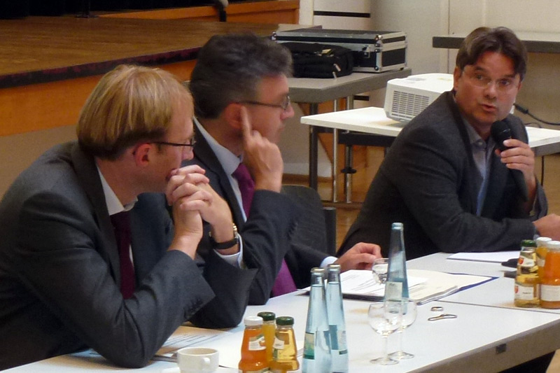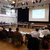 Oberbürgermeister Dieter Salomon eröffnet die Veranstaltung und moderiert die anschließende Diskussion. Er erläutert die Einordnung der heutigen Klausur in die „Veranstaltungsreihe“ zum Kommunalen Handlungsprogramm Wohnen und geht kurz auf die Freiburger Wohnungsmarktsituation ein.