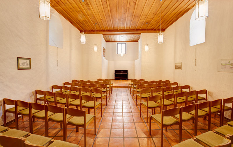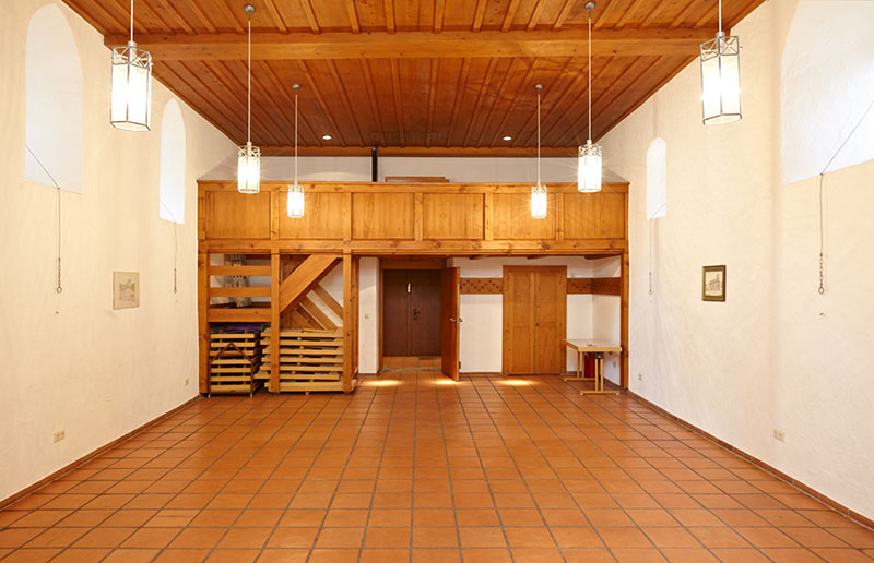 Daneben verfügt die Kapelle über eine kleine Galerie und eine Kaffeeküche gegenüber der Toilettenanlage im Eingangsbereich.