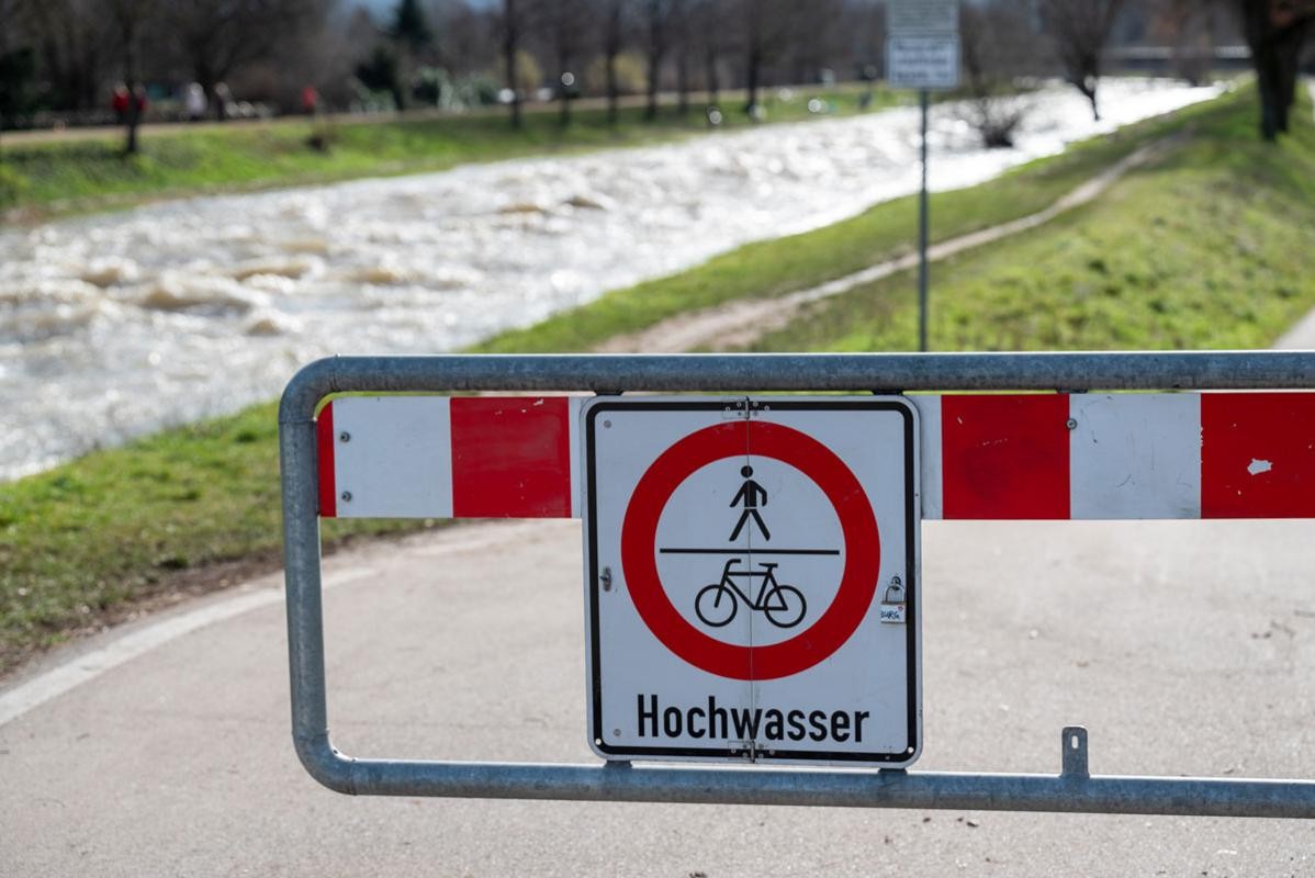 Die Rad- und Fußwege auf beiden Seiten der Dreisam werden bei Hochwasser in einigen Bereichen innerhalb der Stadt Freiburg überflutet und deshalb durch Verkehrszeichen gesperrt.
