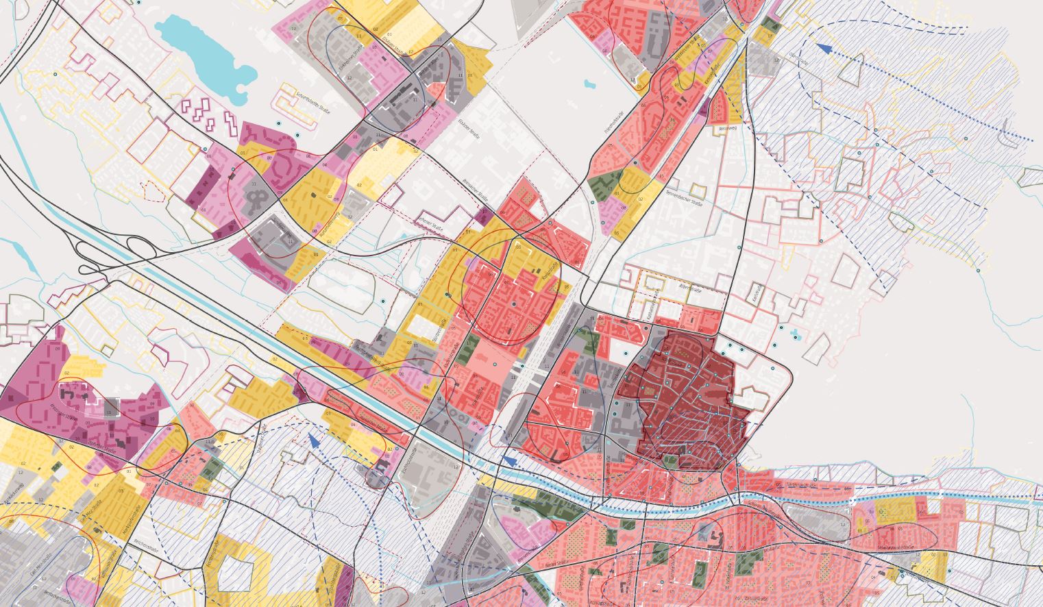 Das Herzstück des Klimaanpassungskonzeptes bildet ein Planwerk, in dem alle relevanten konzeptionellen Aussagen für das gesamte Stadtgebiet räumlich konkret und anschaulich in einem Plan dargestellt werden. Der Gesamtplan kann in den Teilplan Stadtstruktur mit einem spezifischen Portfolio an Anpassungsmaßnahmen und den Teilplan Entlastungssystem unterteilt werden, bei welchem Entlastungsflächen für betroffene Bürger_innen sowie verschattete Wege dorthin abgebildet sind.