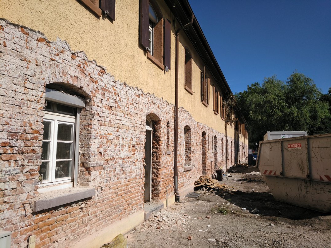 Im Rahmen der Untersuchungen wurden zudem eine historische Ortsanalyse und eine bauhistorische Untersuchung durchgeführt (s.u.). Diese sind für die Entwicklung eines denkmalgerechten baulichen Sanierungskonzeptes notwendig. Entsprechend ist das übergeordnete Ziel der Erhalt der denkmalgeschützten Bausubstanz sowie die denkmalgerechte Modernisierung und Instandsetzung. Von großer Bedeutung sind außerdem der öffentliche Raum mit dem Kinderspielplatz und die Freiflächen der einzelnen Gebäude. Diese sind Begegnungs- und Kommunikationsort der Siedlung. Daher wird auch die Aufwertung des öffentlichen Straßenraums und des zentralen Platzes als mögliche Maßnahme gesehen.
