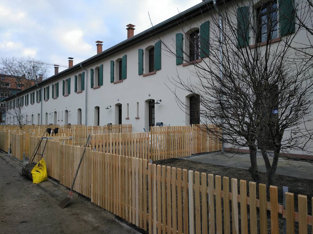 Die denkmalgerechte Sanierung der Knopfhäusle-Siedlung war im Juni 2020 gestartet. Ende 2021 konnten die Arbeiten im ersten Bauabschnitt abgeschlossen werden und die Mieterinnen und Mieter in ihre Wohnungen in der Schwarzwaldstraße 70 und 76 zurückkehren. Unmittelbar im Anschluss hat die Sanierung des zweiten Bauabschnitts mit den beiden Reihenhauszeilen Schwarzwaldstraße 72 und 74 begonnen. Dieser Bauabschnitt wurde Anfang 2024 fertiggestellt. Zudem konnte im Jahr 2023 die Sanierung des Gebäudes Schwarzwaldstraße 64 durch den Freiburger Tafel e. V. fertiggestellt werden.