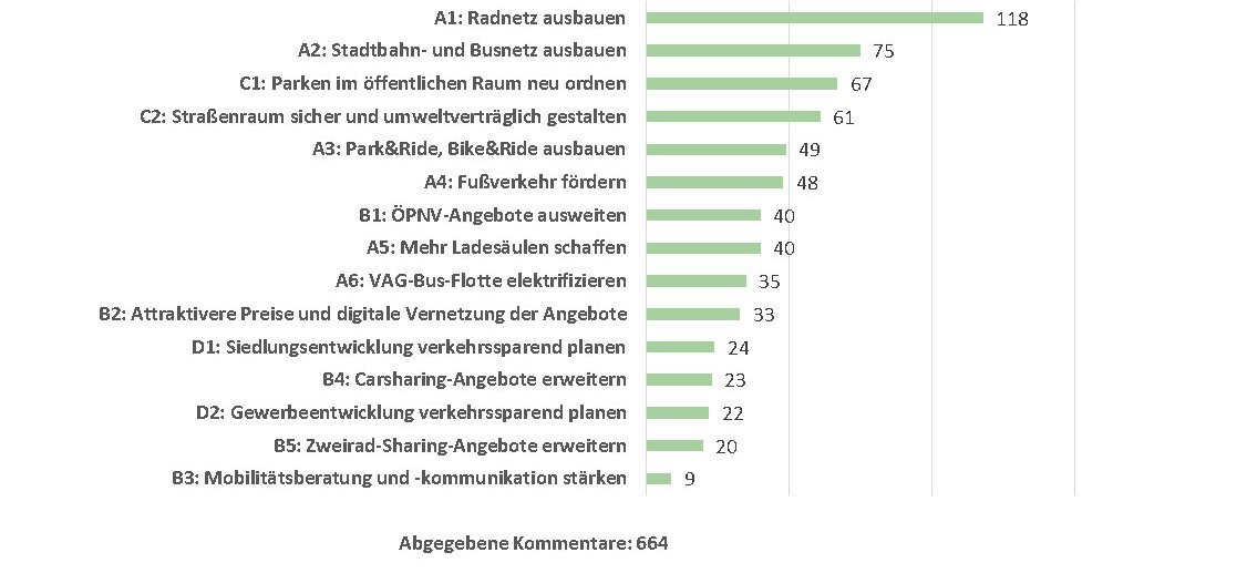 Kommentierung der Vorschläge: Übersicht, wie häufig die Maßnahmen kommentiert wurden.