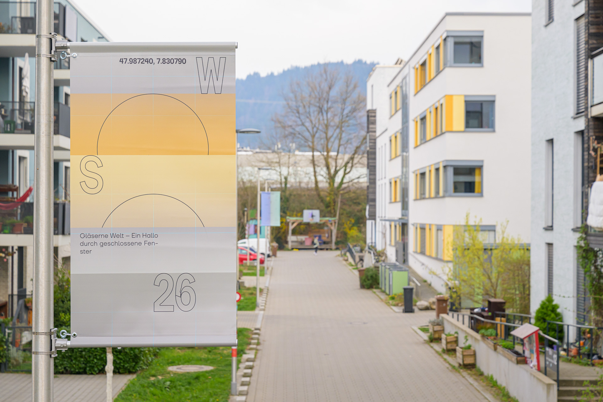 In seiner Intervention #3 Weaving Identities für "KiöR Gutleutmatten" erforscht der Künstler Igor Ponosov die Identität des Viertels und schafft für die Bewohner eine neue Form der Kommunikation im öffentlichen Raum. Die Installation von 10 Bannern, die an Laternenmasten in den Bereichen Gutleutmatten West und Ost angebracht werden, dient als visuelles Signalsystem. Durch Symbole, charakteristische Muster und Designs verbinden die Fahnen die beiden Teile des Quartiers und regen ein Gefühl der Einheit und Interaktion an.