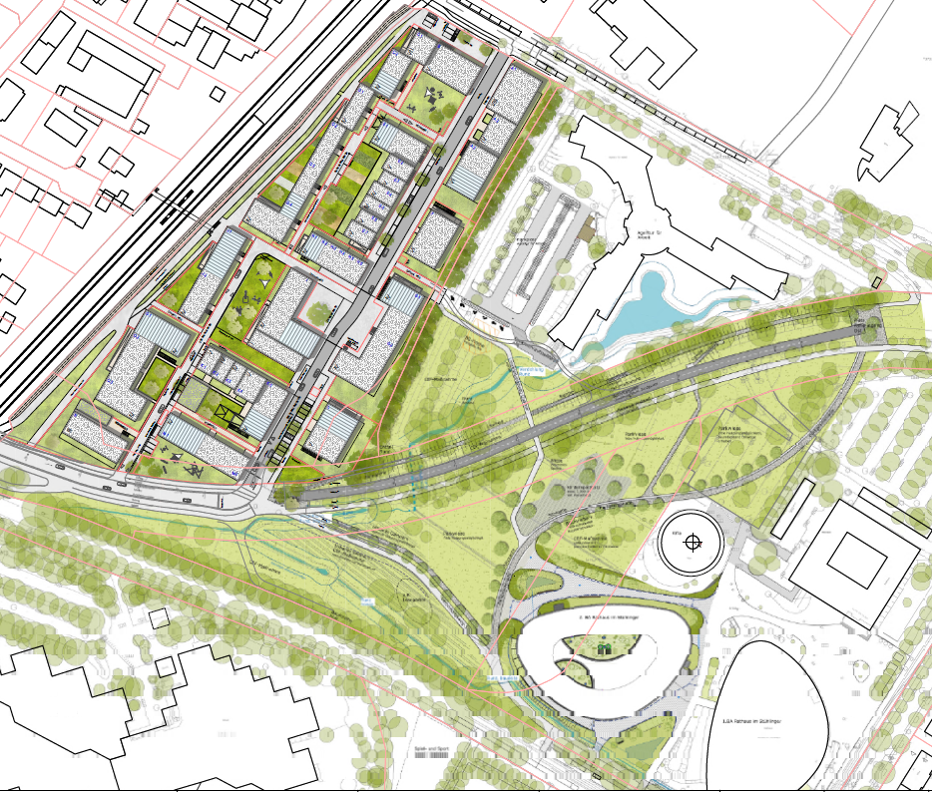 Stattdessen enthält der Rahmenplan Flächen für gemeinschaftliches Gärtnern, die teils öffentlich zugänglich und teils auf den Dachflächen der jeweiligen Hausgemeinschaft vorbehalten sind. Der neue Park, der geplant ist, soll für den Stadtteil insgesamt einen deutlichen Mehrwert schaffen, indem heute nicht zugängliche Flächen für die Allgemeinheit geöffnet und nutzbar gemacht werden