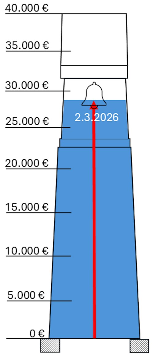STAND Spendenbarometer zum Wiederaufbau des Glockenturms auf dem Friedhof!