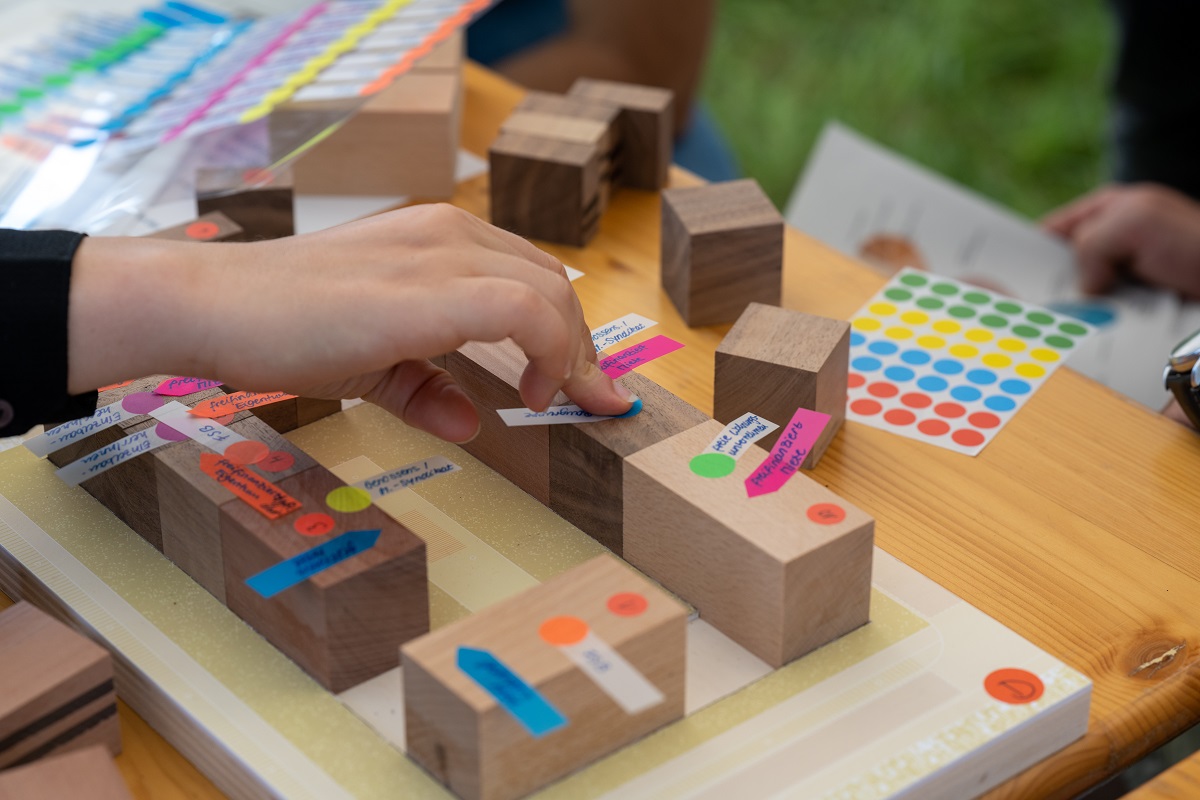 Drei Kleingruppen haben dafür in zwei Workshops an Baufeldern aus dem städtebaulichen Rahmenplan eigene Vermarktungsmodelle entwickelt. Wie in einem Puzzle wurden dafür Holzklötzchen für verschieden Gebäudetypen platziert - zum Beispiel für kleine Townhouses oder große Mehrfamilienhäuser. Für jedes Gebäude wurden dann die Anteile von Miete oder Eigentum festgelegt, und ob diese gefördert oder freifinanziert sind. Außerdem wurde den Gebäuden ein Bauherr zugeordnet - beispielsweise Genossenschaften oder freie Wohnungsunternehmen.