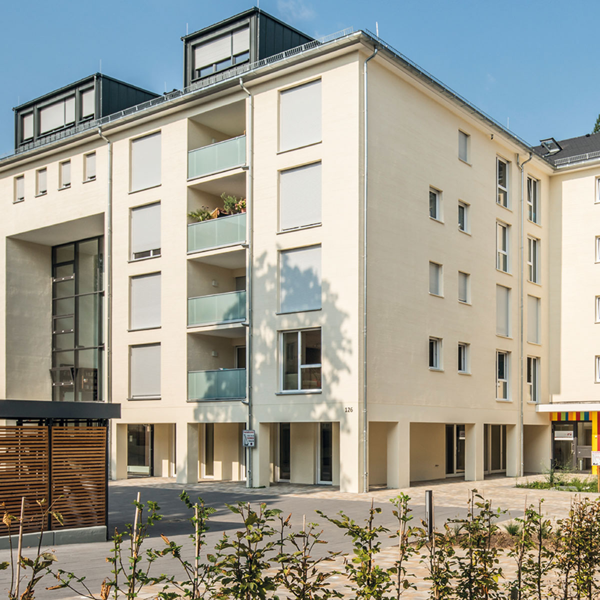 Damit sah man sich gleichermaßen dem Ziel der Bauherrschaft, generationenübergreifende Begegnungsräume zu schaffen, wie auch dem Anliegen, die Stadt konsequent weiterzubauen, ein gutes Stück nähergekommen.