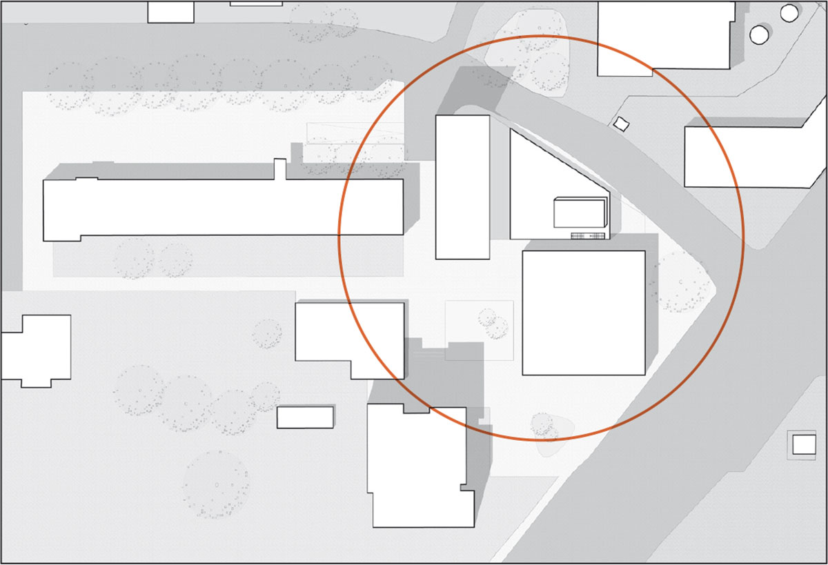 Eine zentrale Aufgabe bei diesem Bauprojekt sah der Beirat darin, einerseits dem gewachsenen Bedarf an Nahversorgung zu begegnen, andererseits durch die Ausweitung von Nutzflächen nicht unnötig Freiräume zu beschneiden. Aus diesem Grund empfahl er, die umlaufend vorgesehenen Rücksprünge nur auf den Eingangsbereich zu beschränken, um wertvolle Innenflächen zu generieren. Im Gegenzug sei aber der Raum zwischen Neubau und Bestand deutlich zu erweitern.