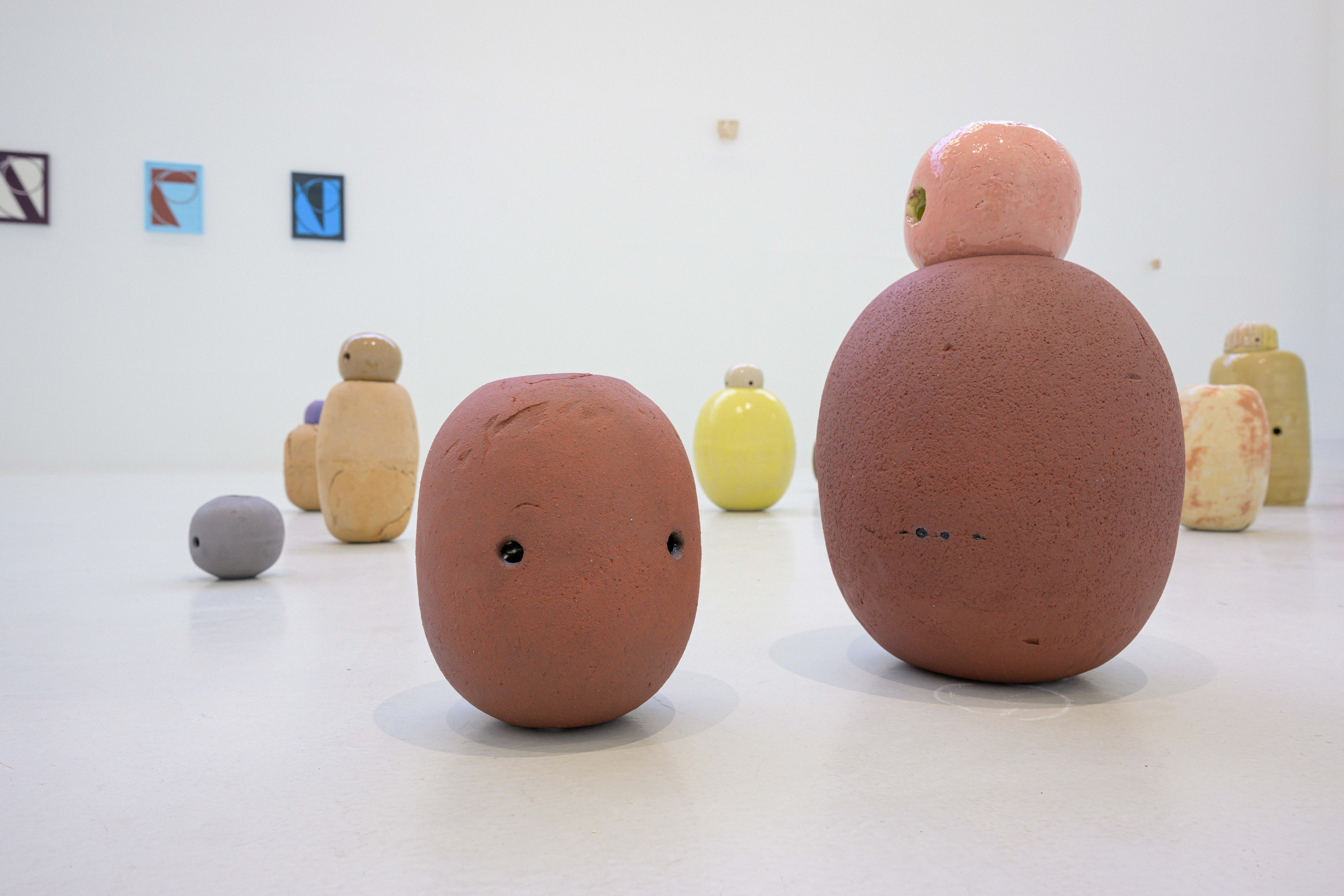 In der Verbindung dieser Ansätze verschieben sich die Ebenen: Sprache wird Bild, Bild wird Körper, Körper wird Hülle. Farbigkeit und Oberfläche verbinden Keramik mit Malerei, während Tanabes Gesichter zwischen Objekt und Zeichen vermitteln. So entsteht ein Resonanzraum, in dem das Serielle nicht nur formales Prinzip ist, sondern ein Mittel, um Wahrnehmung, Bedeutung und Identität immer wieder neu zu verhandeln