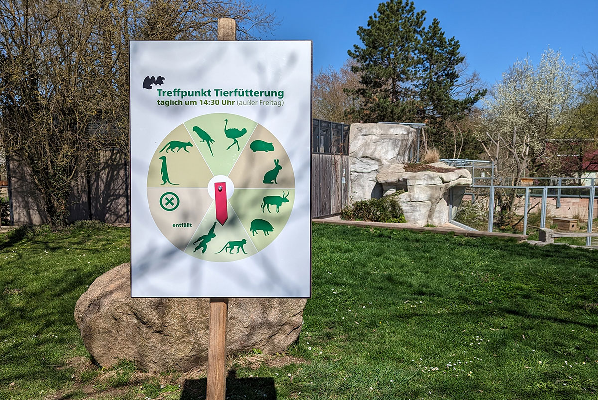 Öffnungszeiten und Preise Plan des Tiergeheges (6,279 MiB) Fütterung und Führungen Infotafeln Anfahrt Termine Gastronomie Fragen und Antworten Videos