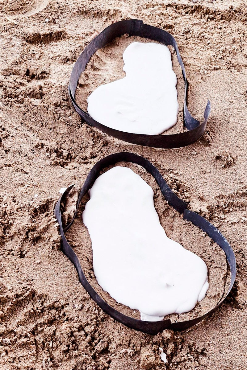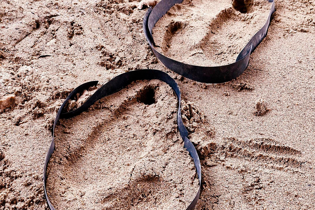 Am schwersten haben es uns die Strauße gemacht – sie wollten einfach nicht auf die richtige Stelle treten. Schließlich haben wir eine große Fläche Sand nass gemacht, geglättet und dann die Strauße darüber gelockt. Und da hatten wir sie endlich: unsere Straußen-Spuren.