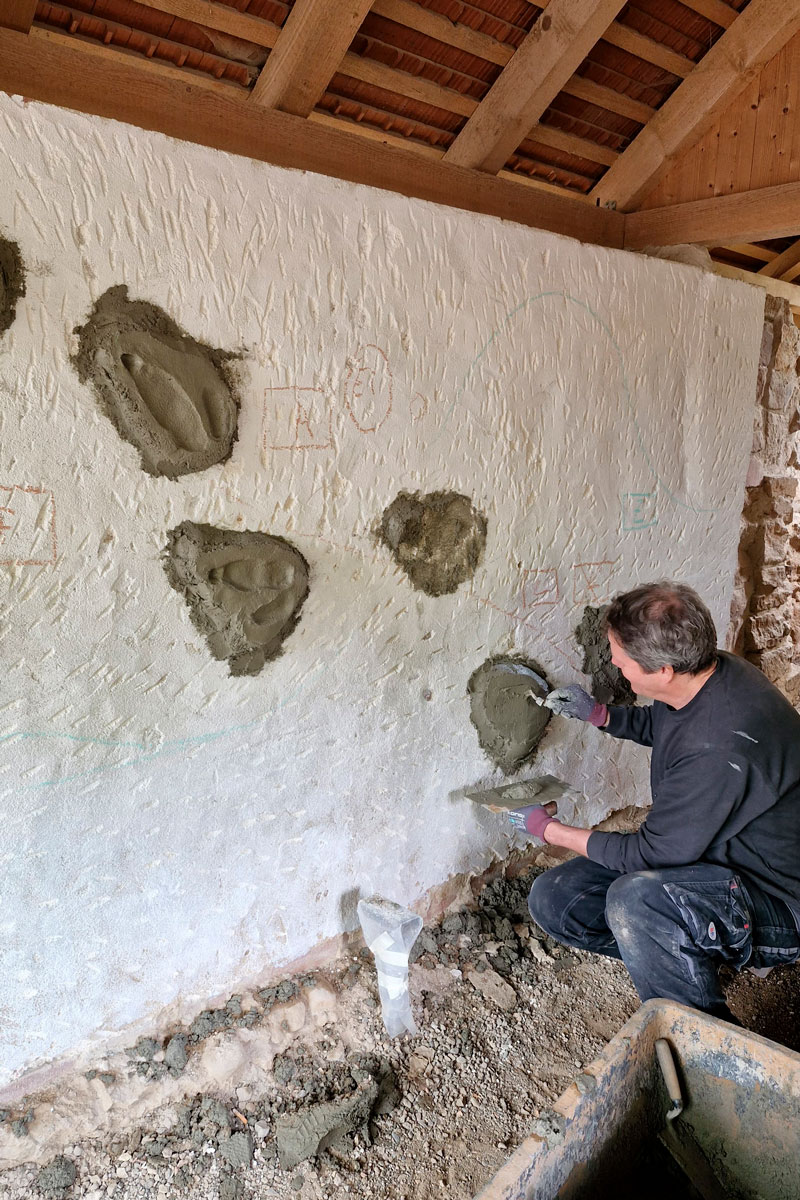 Les étapes suivantes semblent sortir tout droit d’un film policier. Nous avons rempli les empreintes de plâtre et laissé tout sécher. Ensuite, il a fallu nettoyer, poncer, reproduire et vernir les empreintes, jusqu’à obtenir des tampons précis des empreintes.