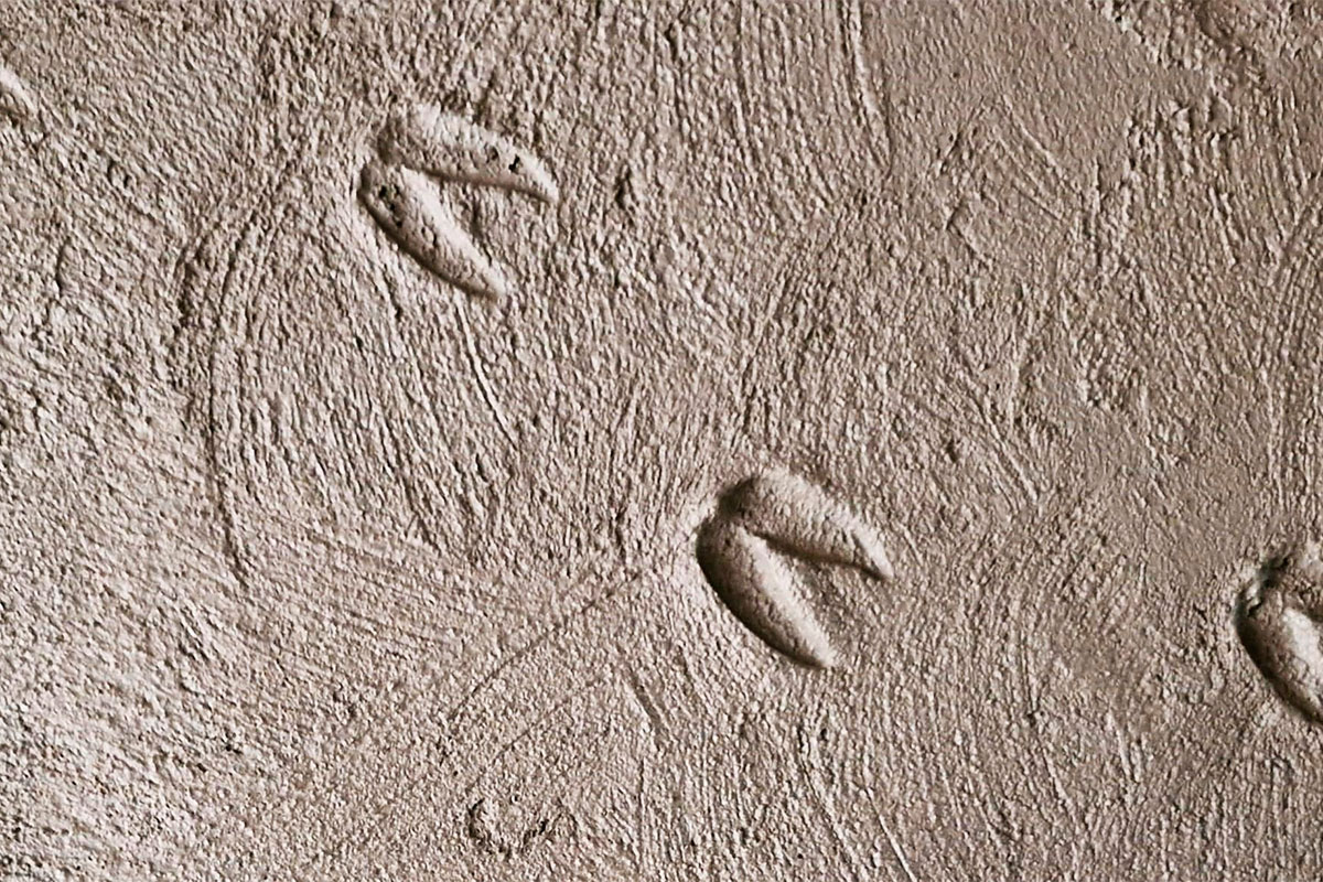 Le plus difficile a été d’obtenir les empreintes des autruches, qui refusaient de marcher là où il fallait. Finalement, nous avons recouvert une grande surface de sable humide et lisse et nous y avons attiré les autruches. Et voilà : nous avions enfin nos empreintes !