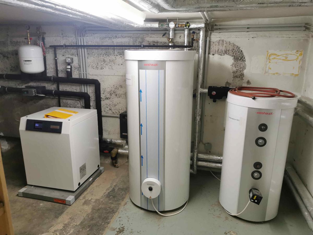Im Zuge der Sanierung des Mehrparteienhauses wurde die Gaszentralheizung gegen eine Wärmepumpe mit Erdsonde ausgetauscht. Hier war es von Vorteil, dass die Bauherren, durch die Begeisterung für neue Heizungstechnologien viel Eigenmotivation für dieses Vorhaben mitbrachten. Im Zuge dessen wurden die alten Heizkörper durch eine Fußbodenheizung in allen vier Wohneinheiten ersetzt, was eine gleichmäßigere Wärmeverteilung in den Räumen fördert und so zu einem angenehmeren Raumklima geführt hat. Darüber hinaus wurde das Dach umfassend saniert und mit einer 8kWp-Photovoltaikanlage versehen. Diese Maßnahmen haben zu einer erheblichen Reduzierung des Energiebedarfs um ca. 75% geführt. Malerarbeiten innen und außen, die Erneuerung von Bädern und Küche sowie Elektroarbeiten rundeten das Gesamtprojekt ab.